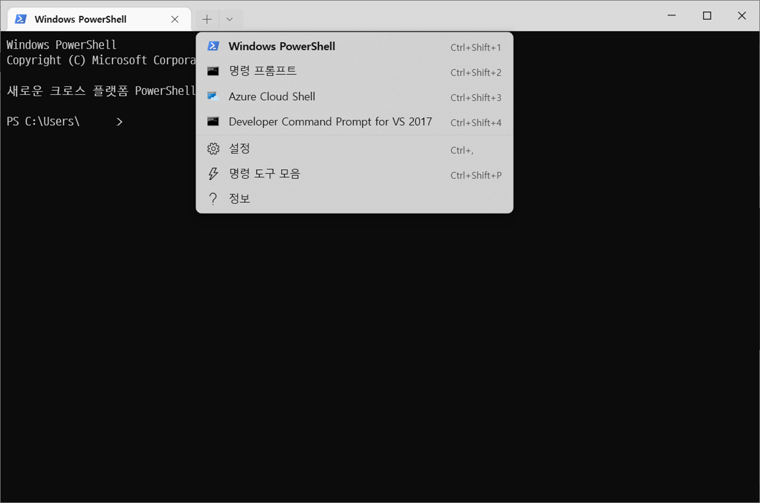 다음은 설치 후 Windows Terminal을 실행한 화면이다.