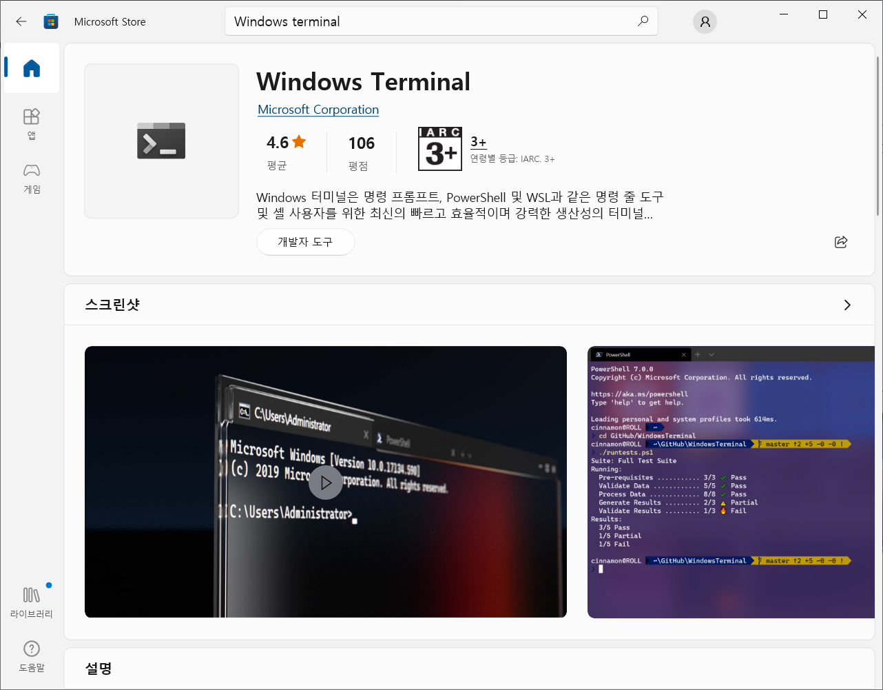 Windows Terminal은 Microsoft Store에서 다운로드 및 설치가 가능하다.