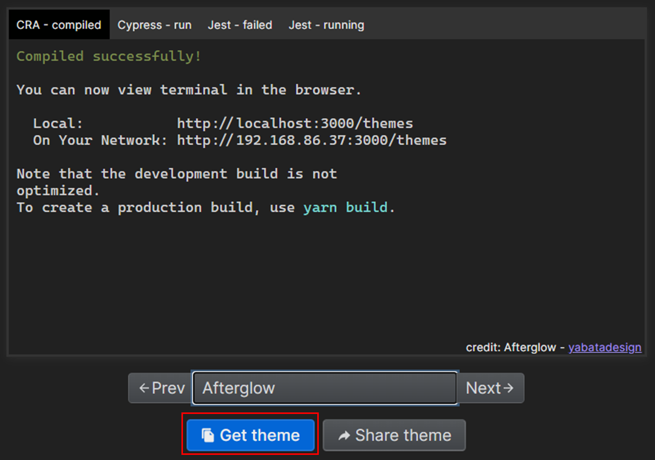 우선, 'Get theme' 버튼을 누르면 색구성 프로필 코드가 복사된다.
