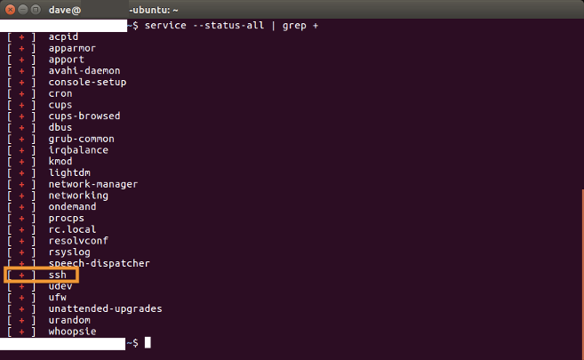 $ service --status-all | grep + # 실행 중인 서비스 목록 확인