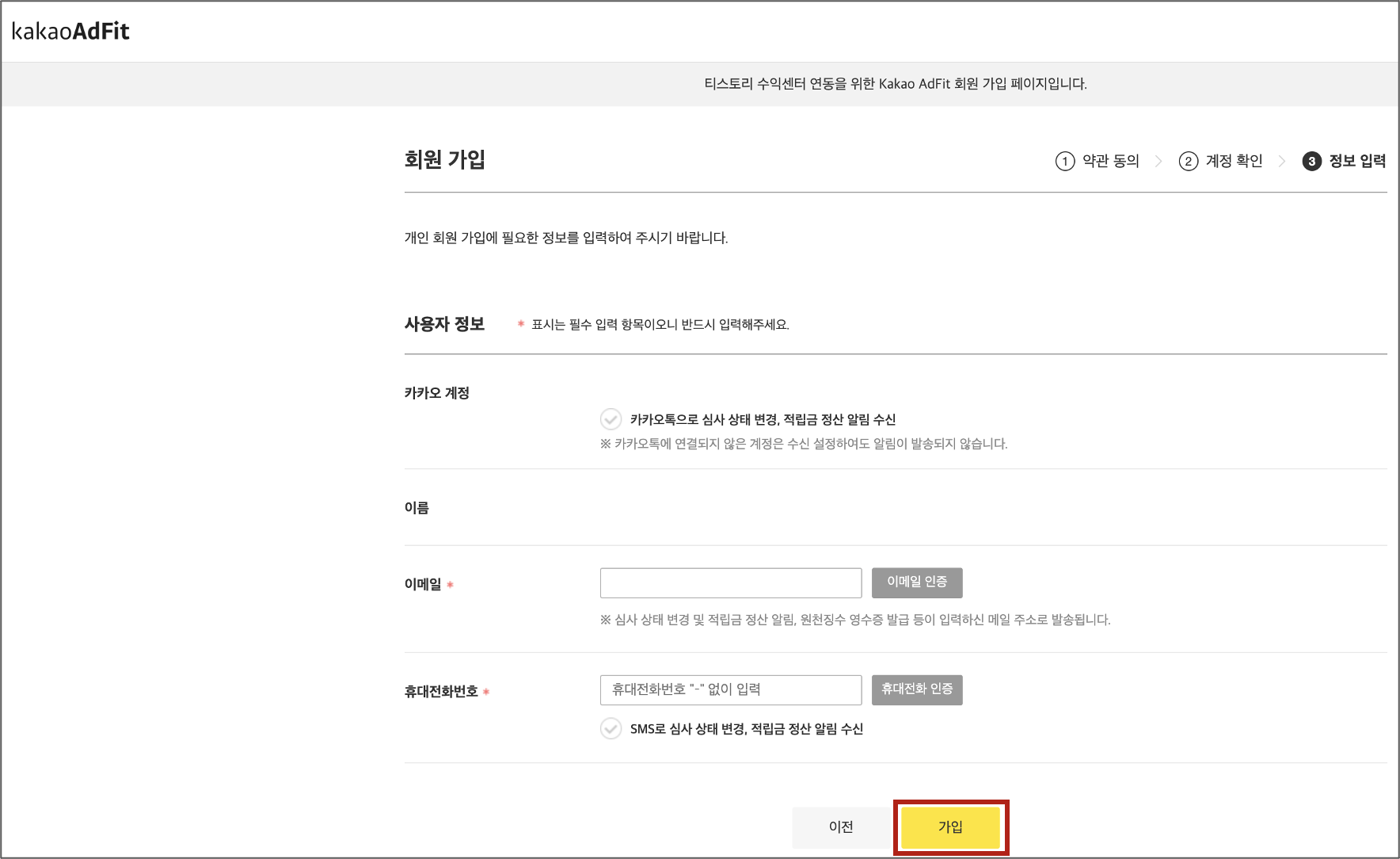 4/24 (토): 카카오 애드핏 (kakao AdFit) 승인 신청