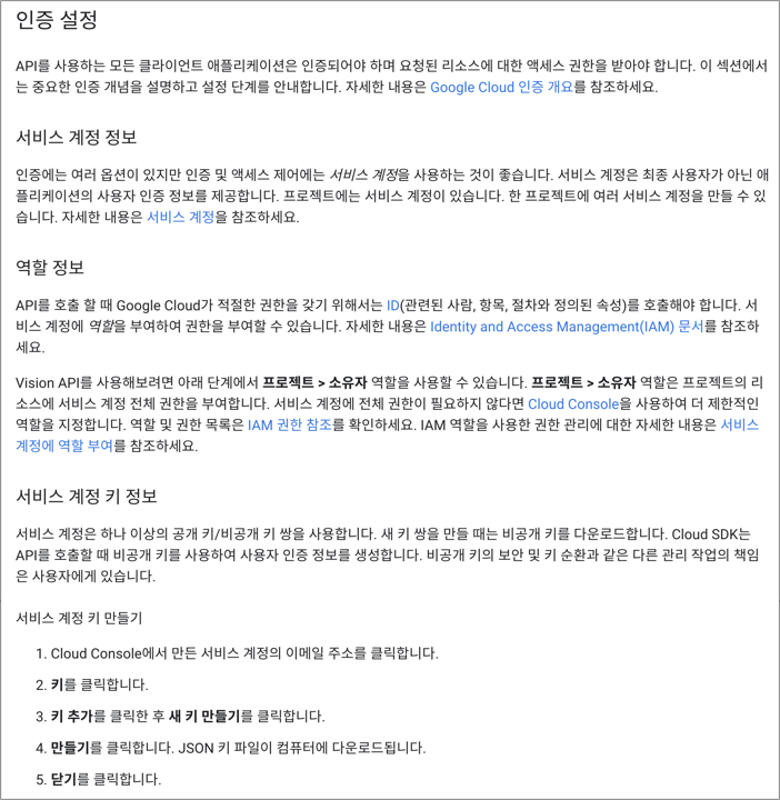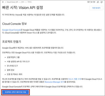 다음 링크에서 Vision API 관련 설정을 순차적으로 진행한다.