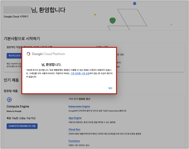 먼저 다음 링크에서 Google Cloud에 가입하는 것부터 시작하자.