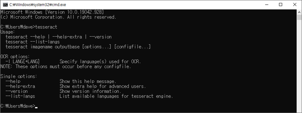 (tesseract-ocr) > pip install pytesseract