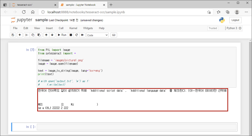 Tesseract OCR을 사용하는 방법에 대한 설명은 여기까지이다.