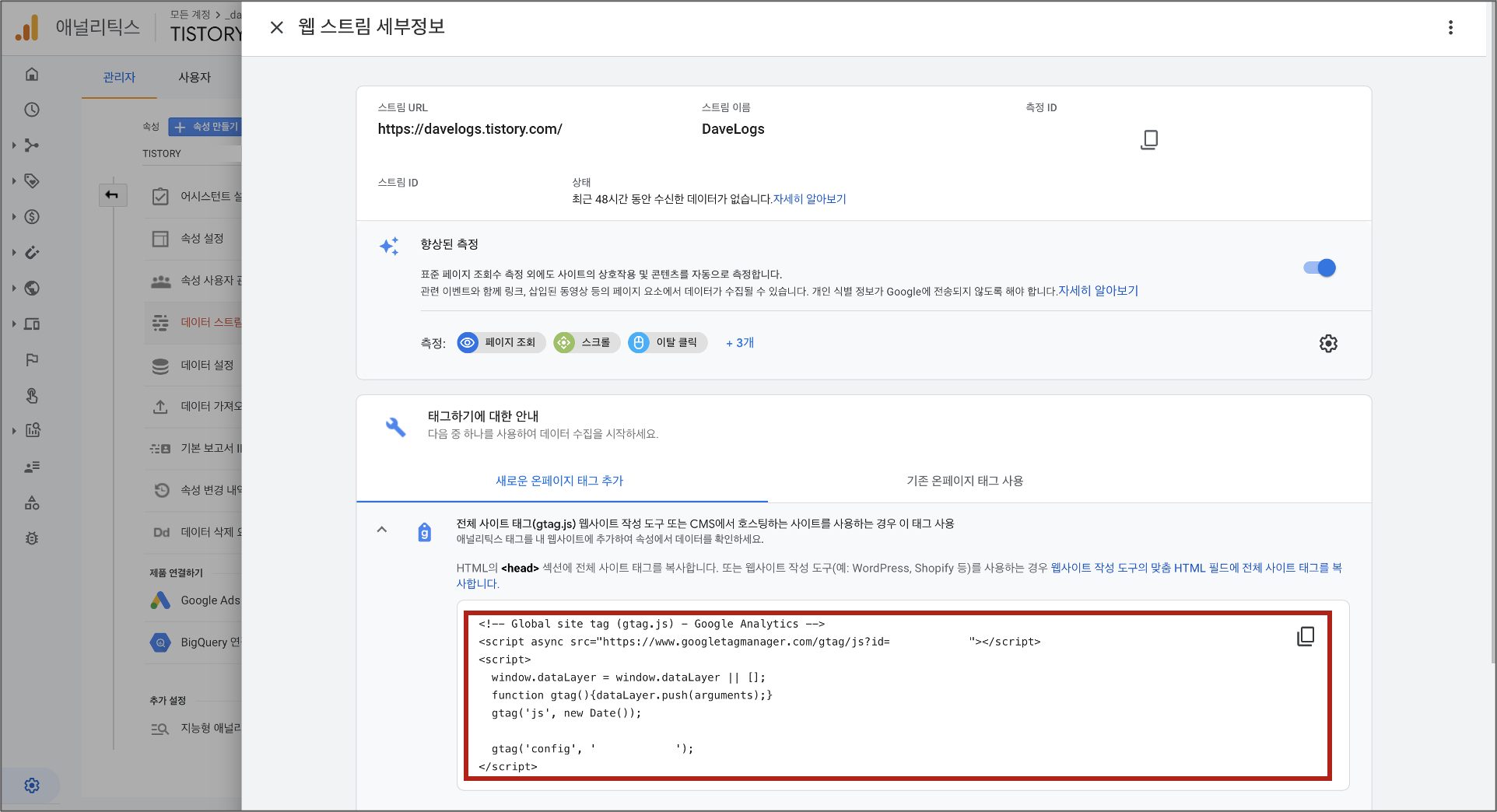 이어서 나오는 스크립트(gtag.js)를 복사한다.