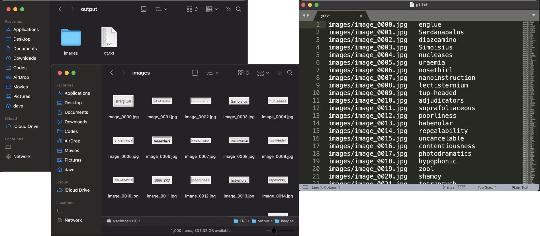 이전 포스트에서 TextRecognitionDataGenerator 프로젝트를 이용해 생성한 학습데이터는 학습을 위한 deep-text-recognition-benchmark 프로젝트에서 요구하는 데이터 구조는 아니었고, 또한 바로 사용할 수 없었다. 필요에 의해 다음과 같이 단순한 데이터 변환 기능을 갖는 프로젝트를 만들어 공유하고자 한다.