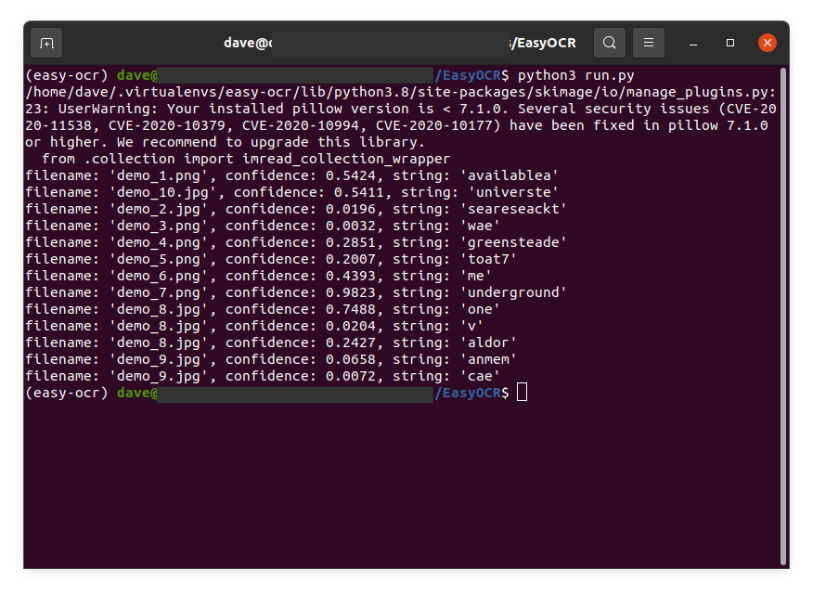 print("filename: '%s', confidence: %.4f, string: '%s'" % (filename, confidence, string))