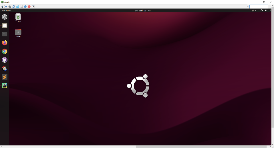 패스워드 입력 후 로그온(Log On)하면 다음과 같이 우분투(Ubuntu)에 접속된 화면을 확인할 수 있다.