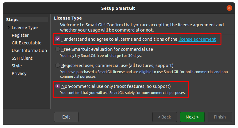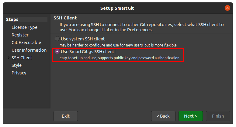 SSH Client는 원하는 것으로 선택하면 되는데, 잘 모르겠다면 기본값으로 진행!